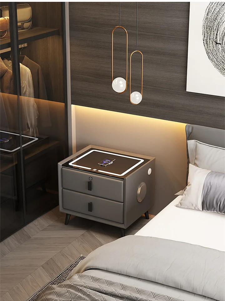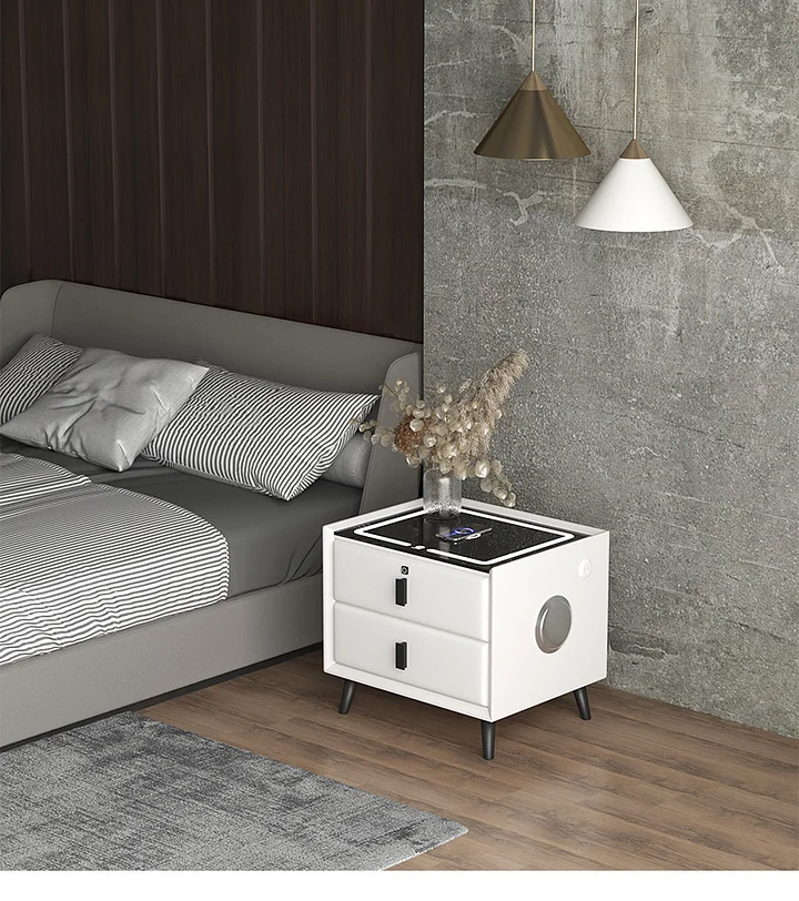 Reconhecimento de impressão digital Smart Side Nightstand Table 0.5S, desbloqueio de meio segundo, desbloqueio de várias impressões digitais, reconhecimento de impressão digital 360 ° em qualquer ângulo, quanto mais você o usa, mais flexível ele é.