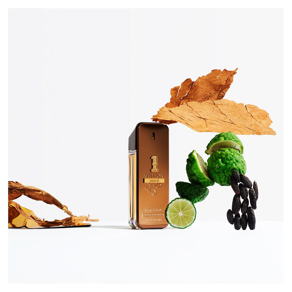 One Million Privé, de Paco Rabanne traz audácia em cada nota. Sua fragrância sofisticada e sedutora é uma verdadeira afirmação de masculinidade, com toques de couro, mandarina sanguínea, hortelã apimentada, absoluto de rosa e canela. O toque final é o âmbar ketal, para coroar o One Million Privé como a realeza dos perfumes importados masculinos.