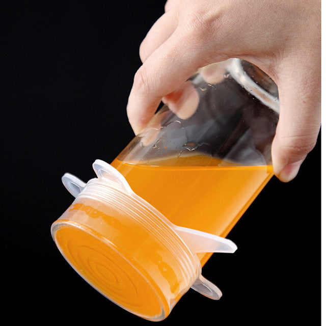 1 Jogo de 6 tampas de silicone reutilizável elástica