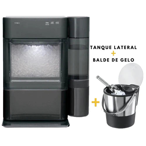 Máquina de gelo com tanque lateral + balde de gelo como brinde