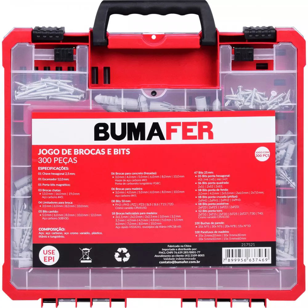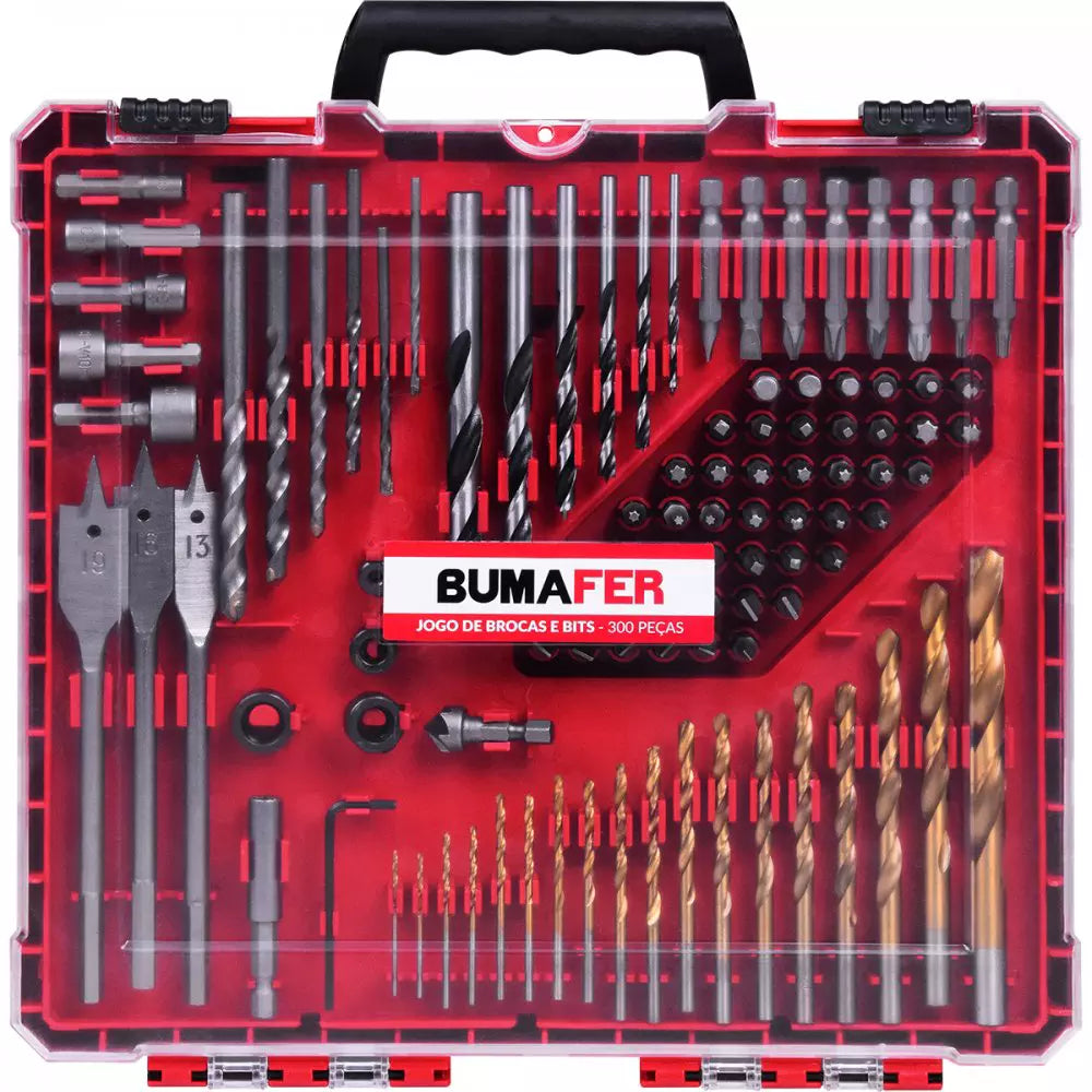 Jogo de Brocas e Bits em Aço Cromo Vanádio com 300 Peças Bumafer