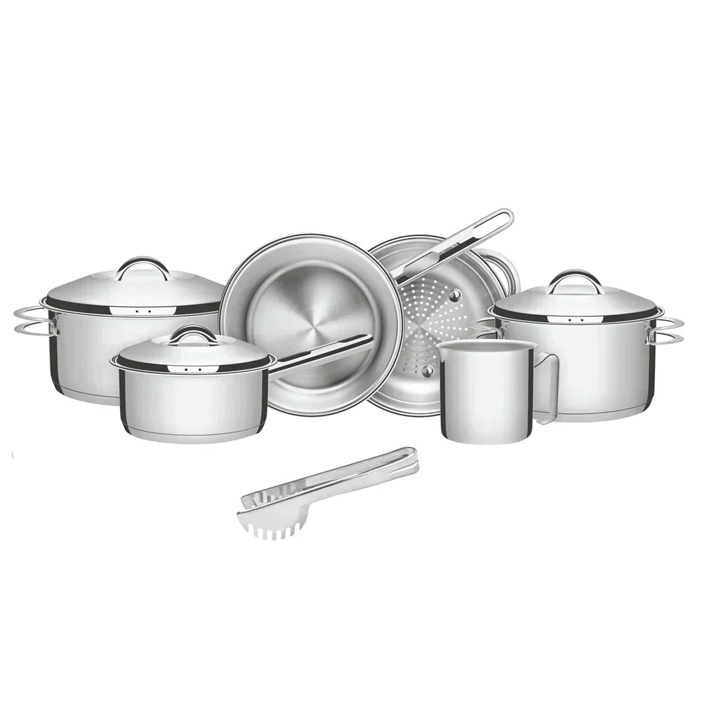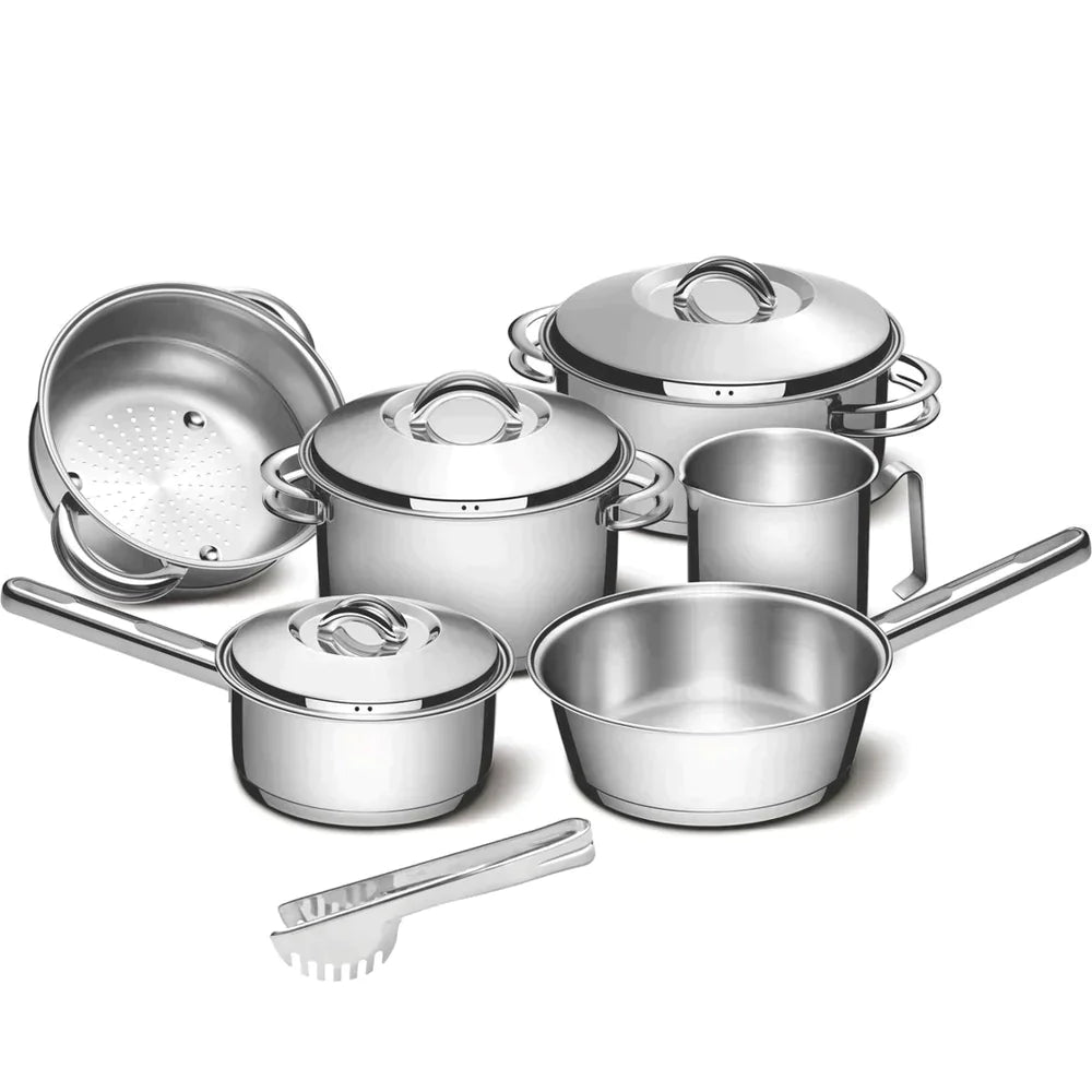 Jogo de Panelas Tramontina Aço Inox Allegra 10 Peças Fundo Triplo Com Pegador de Massa