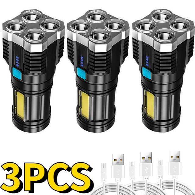 A super lanterna possui um longo alcance, foco ajustável e 5 modos de iluminação, permitindo que você se prepare para qualquer situação (pesca, esportes, camping, passeios de carro, etc.).