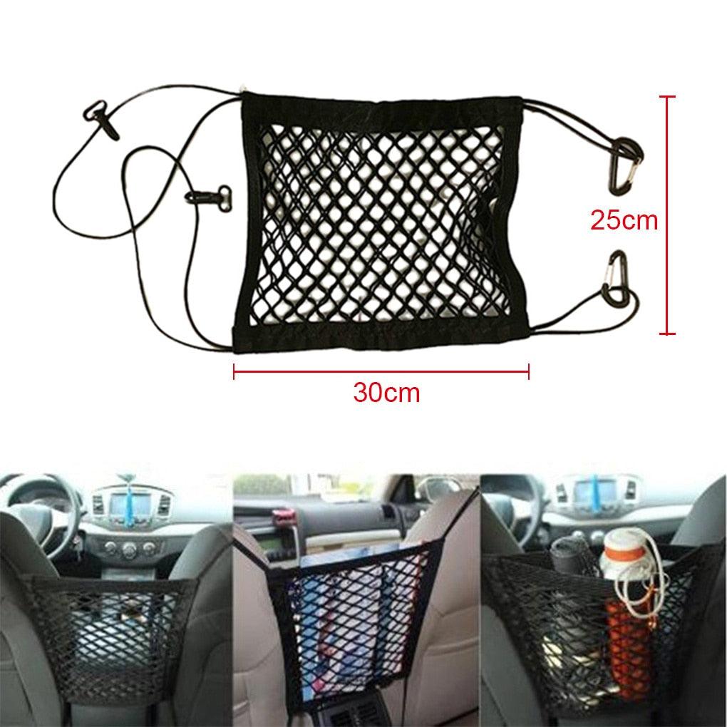 AJUSTE CONVENIENTE – Sem necessidade de perfuração ou colagem, 4 ganchos de segurança confiáveis. Você pode facilmente pendurar a rede de armazenamento na barra do encosto de cabeça em 1 minuto.