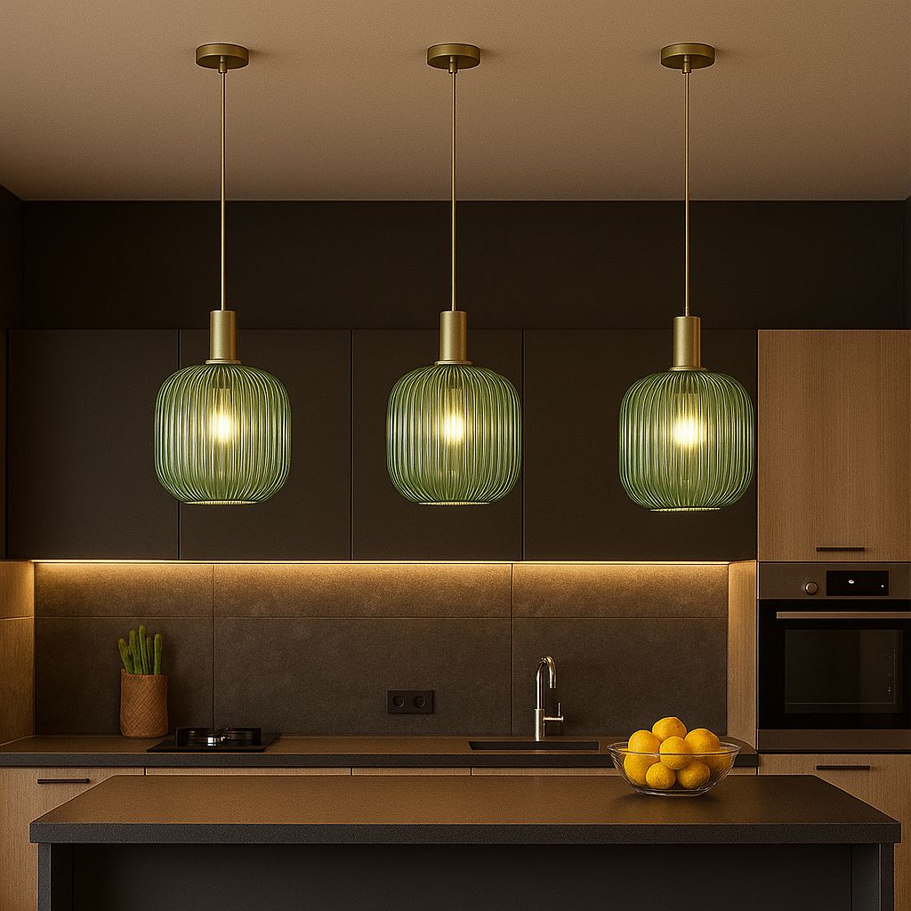 Transforme seu espaço em um refúgio de elegância com o Lustre Pendente Luxuoso Retrô Glass Green.