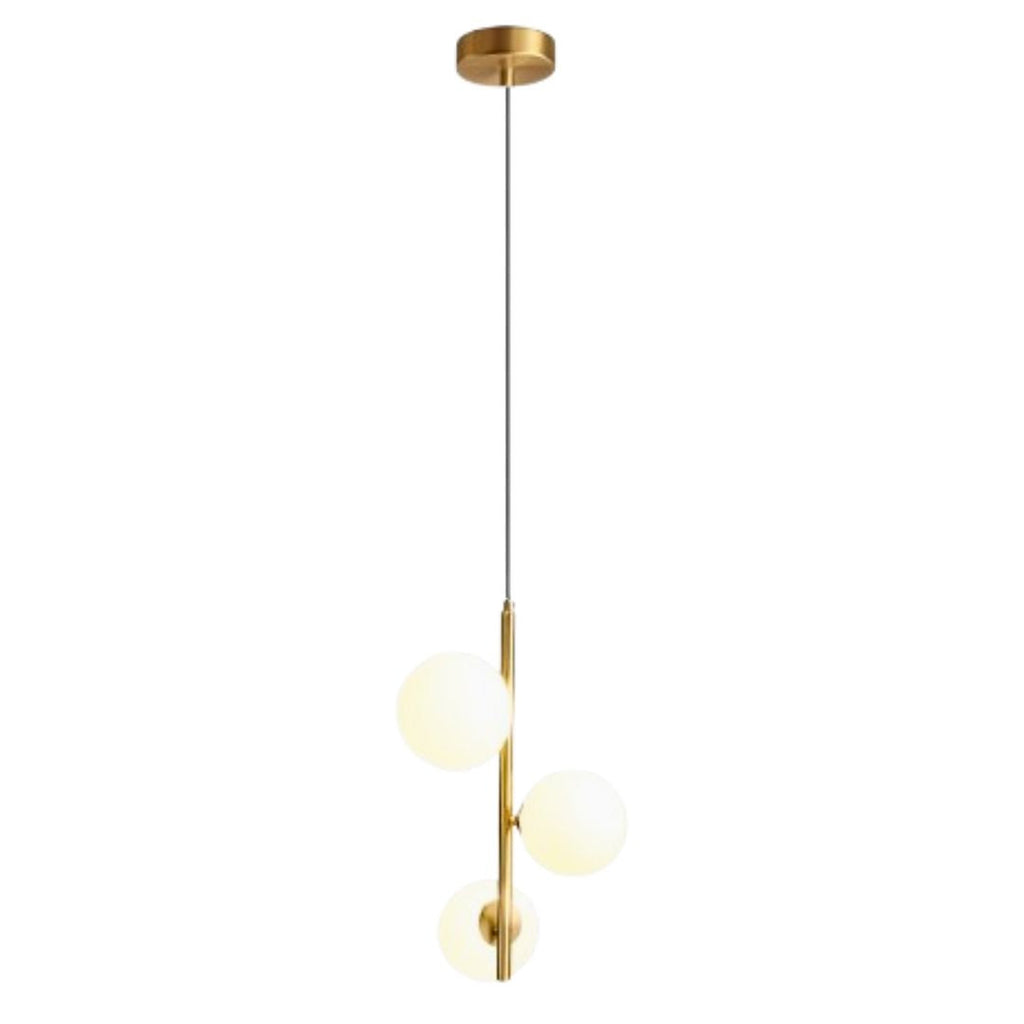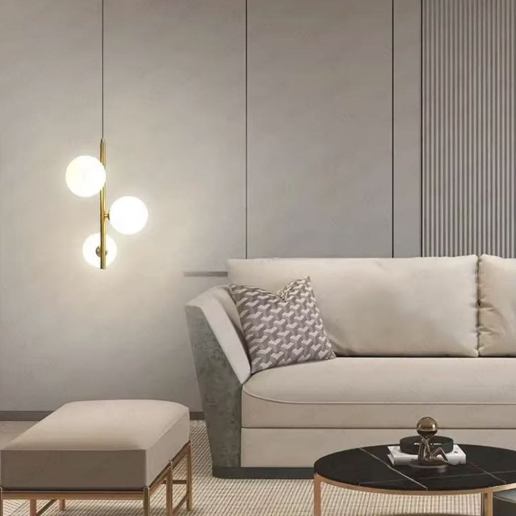 Composto por três esferas em vidro opalino estrategicamente posicionadas em torno de uma haste dourada, esse lustre cria um efeito deslumbrante que chama atenção e valoriza a decoração. Seu cabo ajustável permite adaptação em diferentes alturas, tornando-o ideal para salas de jantar, halls de entrada, cozinhas gourmet, escritórios ou ambientes comerciais modernos.