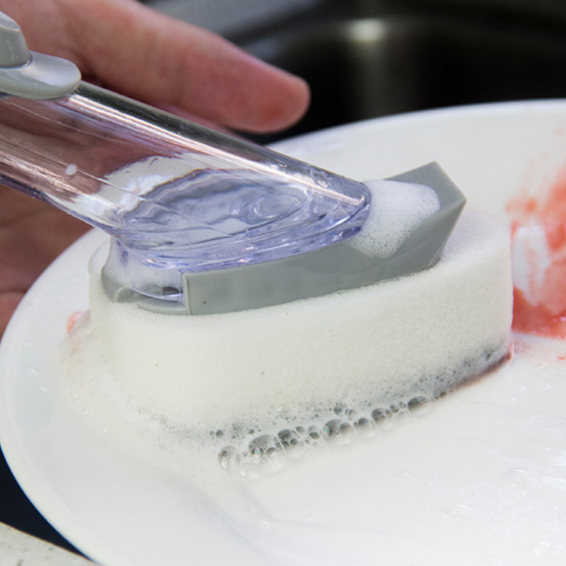 Esta ferramenta de limpeza inovadora vem equipada com um dispensador para garantir que o sabão de lavar louça fique em torno de seus pratos, não em toda a pia.