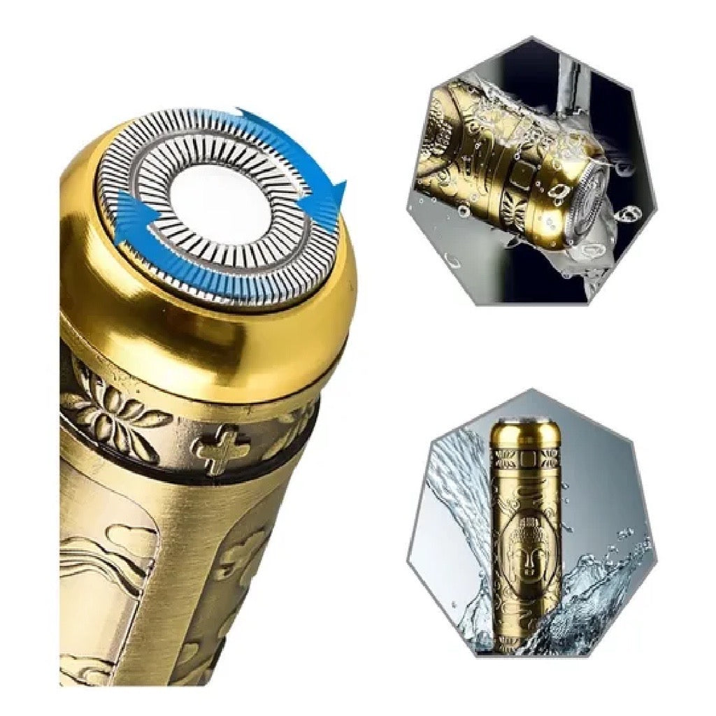 O barbeador elétrico portátil não se caracteriza apenas por sua ergonomia , mas também é esteticamente agradável aos olhos, graças à textura em relevo.