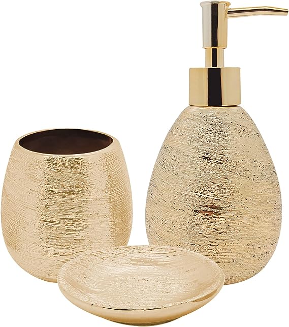 • SOFISTICADO E INOVADOR: Decore seu espaço. O design elegante e sua cor dourada torna a escolha ideal para ambientes modernos. Este conjunto de acessórios adiciona charme atraente a qualquer banheiro. É adequado para residências, hotéis, escritórios e outros