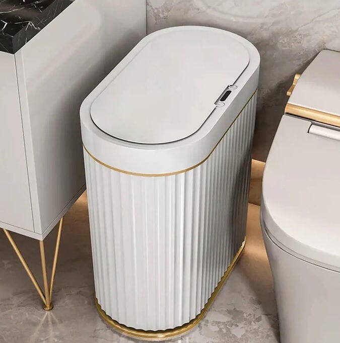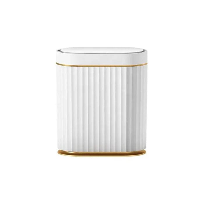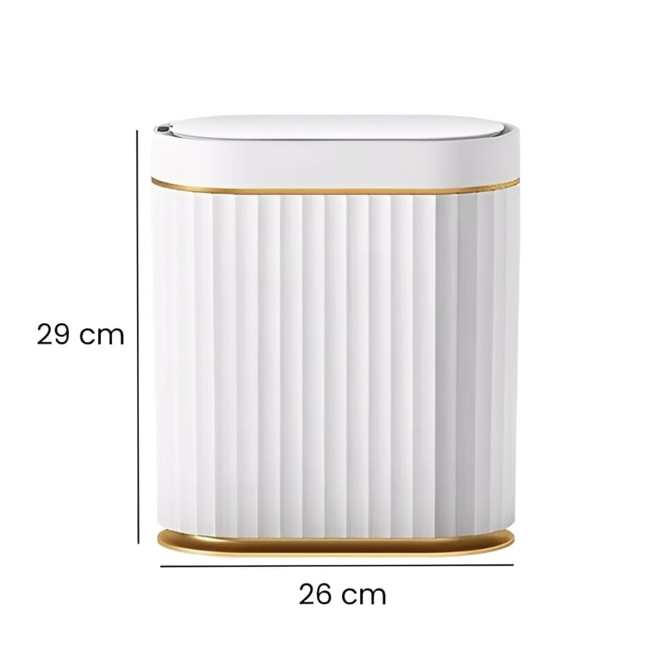 Com acabamento luxuoso em branco com dourado ou branco com cinza, ela é perfeita para quem valoriza elegância em cada detalhe da casa. Equipada com sensor de movimento ultrassensível, abre e fecha automaticamente sem contato físico, garantindo mais higiene e evitando o acúmulo de bactérias. Além disso, sua estrutura moderna com linhas verticais e detalhes metálicos torna-se um verdadeiro objeto de decoração funcional.