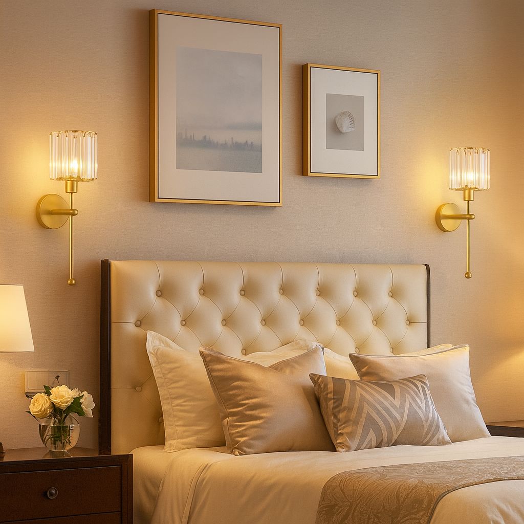 Com sua estrutura em metal dourado de alto padrão e cúpula formada por cristais K9 lapidados, essa arandela oferece um efeito de luz que transmite elegância, sofisticação e aconchego. Cada detalhe foi pensado para quem busca uma iluminação que eleva o ambiente a um novo nível de classe e exclusividade.
