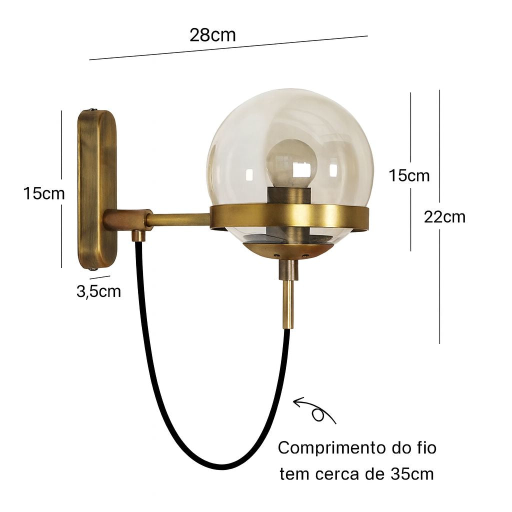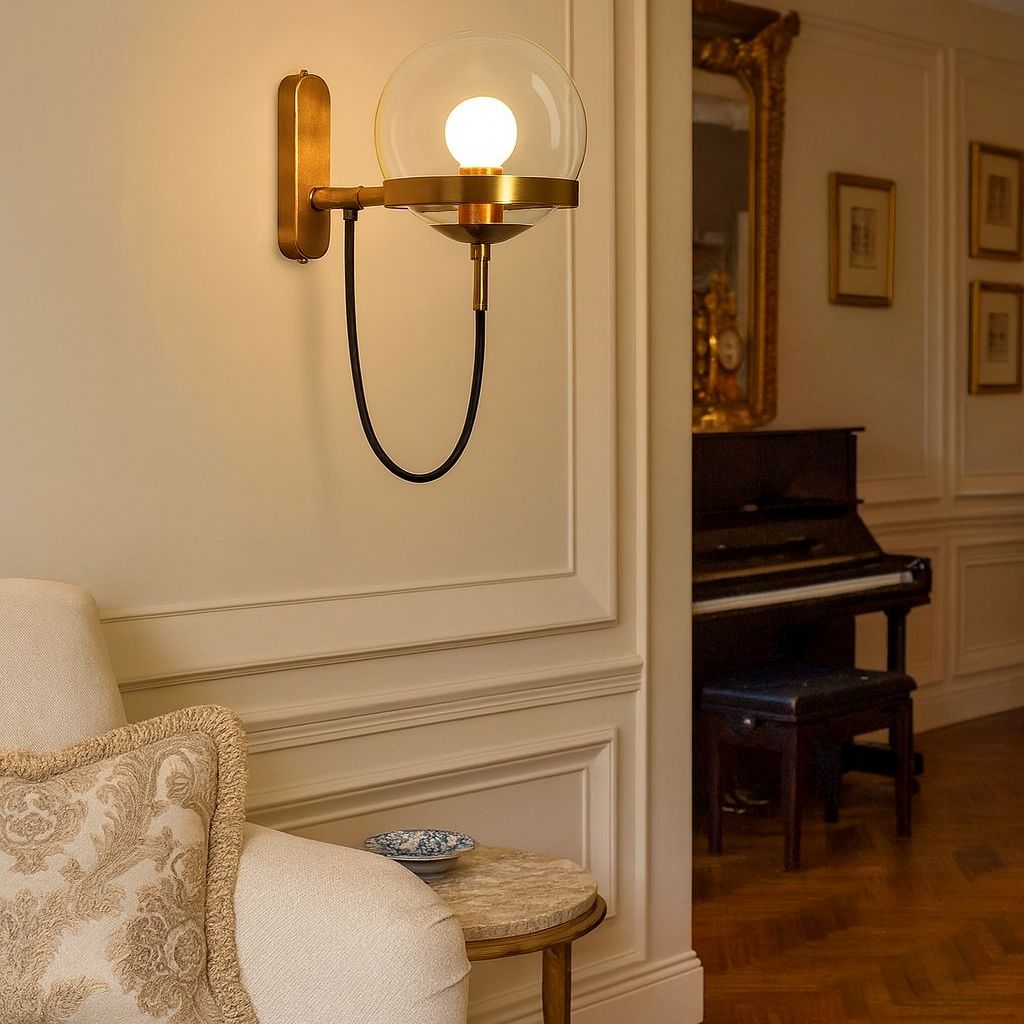 Com seu acabamento luxuoso e globo de vidro, esta arandela não é apenas uma luminária — é uma obra de arte funcional. A luz suave e difusa cria uma atmosfera calorosa, perfeita para receber convidados, relaxar no quarto ou dar destaque a paredes e objetos decorativos. É a peça-chave que combina com decorações modernas, minimalistas, industriais e clássicas.