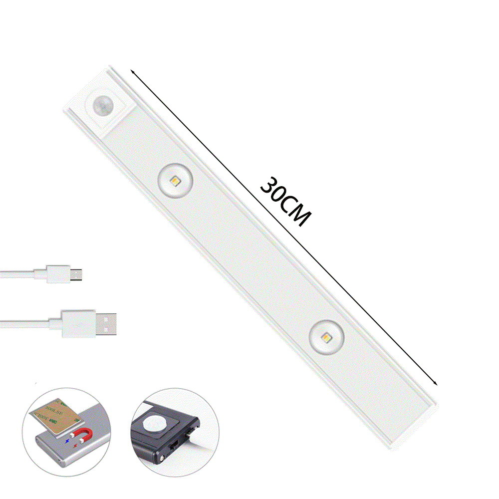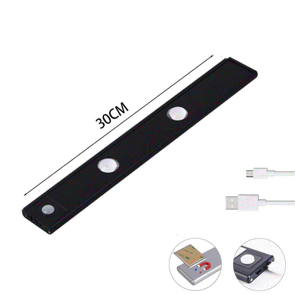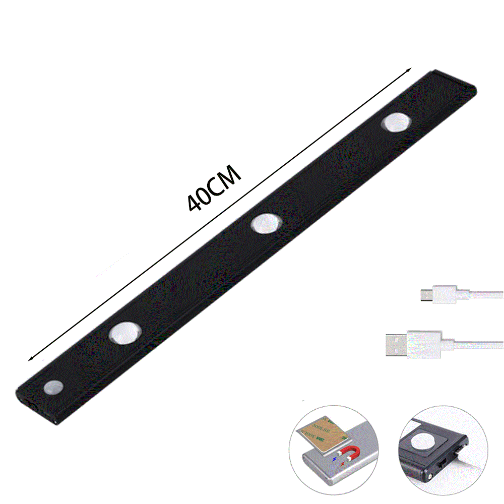 Luz Led Sensor Moção Recarregável USB Para Cozinha Armário Guarda-roupa Iluminação 20cm/30cm/40cm LEDs de Alumínio