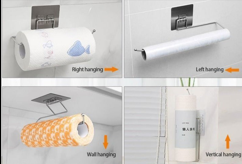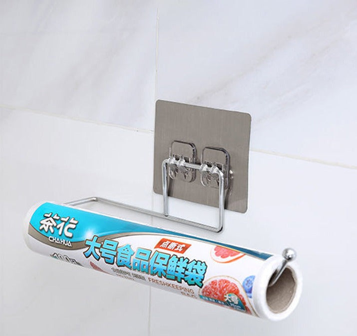 Cole primeiro o adesivo em uma superfície limpa e lisa, depois encaixe o gancho para pendurar o papel toalha, papel fime, panos de prato ou o que você precisar para organizar sua cozinha.